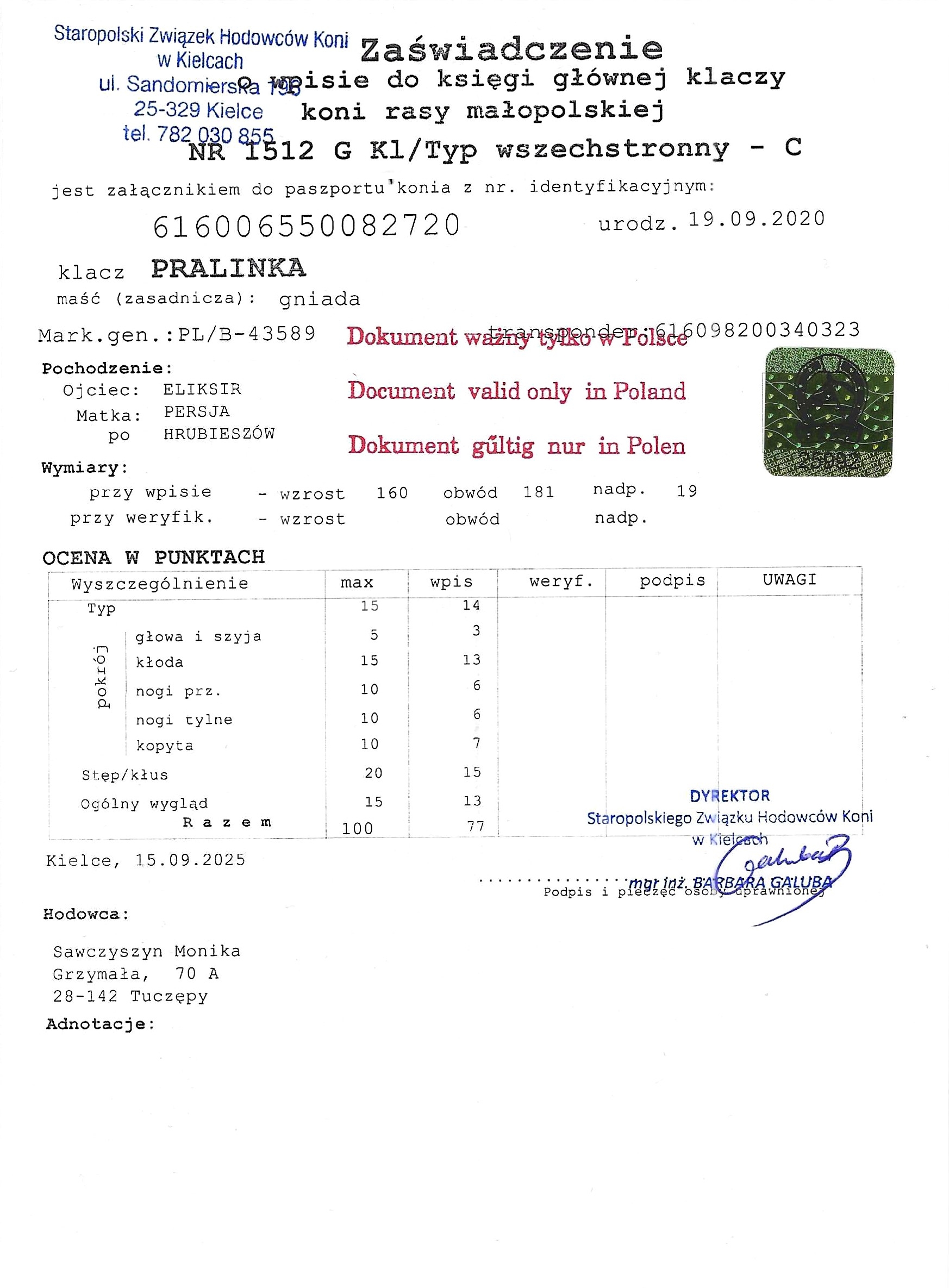 Ur. 29.05.2006, hodowla: Pogorzelski Marek