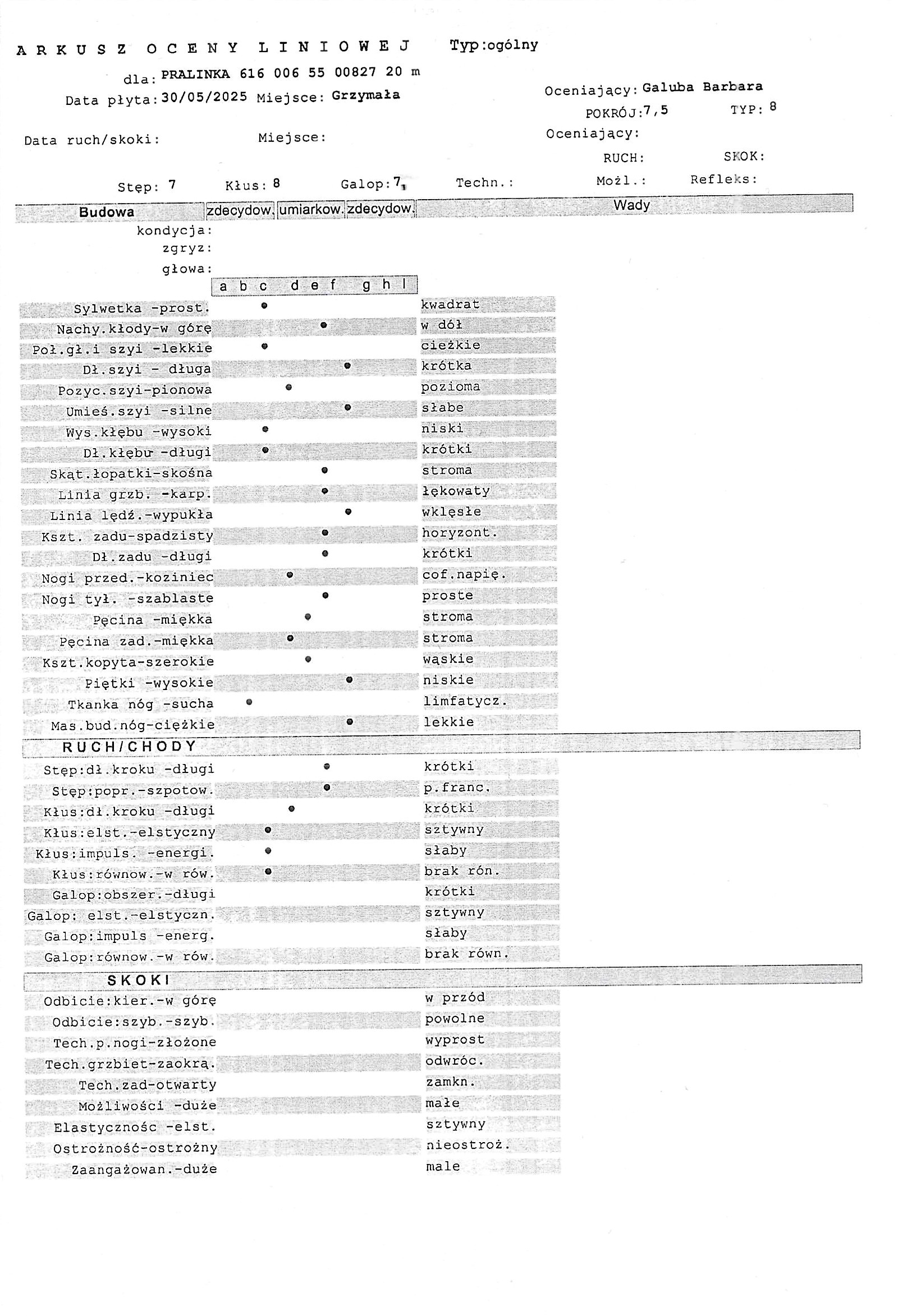05\2017 zdał polowę próbę ogierów w ZT Łąck